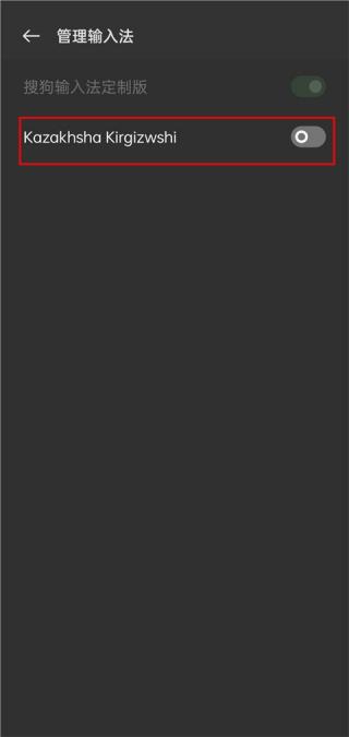 2、添加完成后进入输入法的管理界面,找到哈萨语输入法用手指点击选中它,系统会自动将哈萨语输入法设置为当前默认使用的输入法。