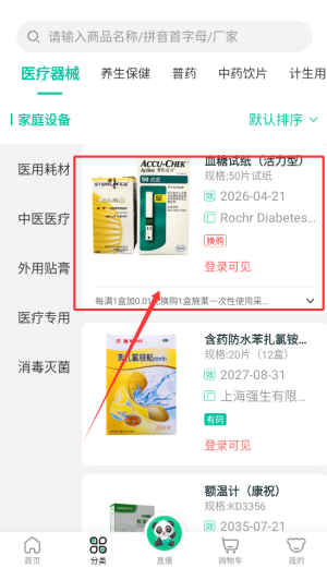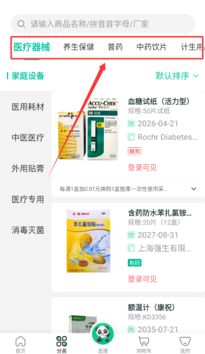 3、分类页面提供医疗器械、养生保健及中药饮片等多种类型选择。