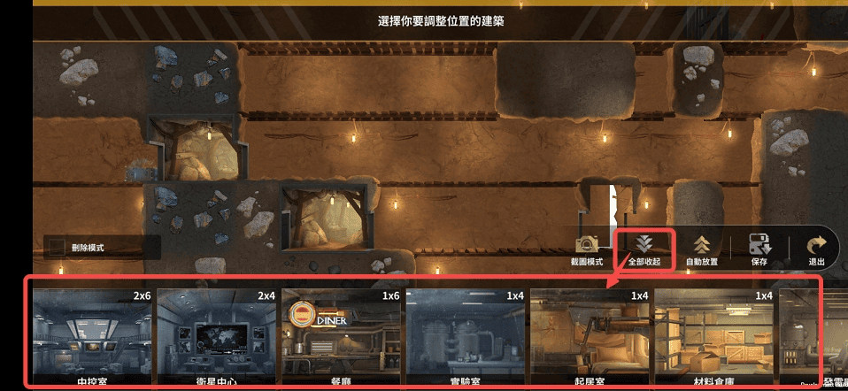 1.如果需要大面积地调整基地建筑的话,可以在编辑模式中使用【全部收起】的功能,点击后所有的房间都被收至下方的【建筑列表】一栏中