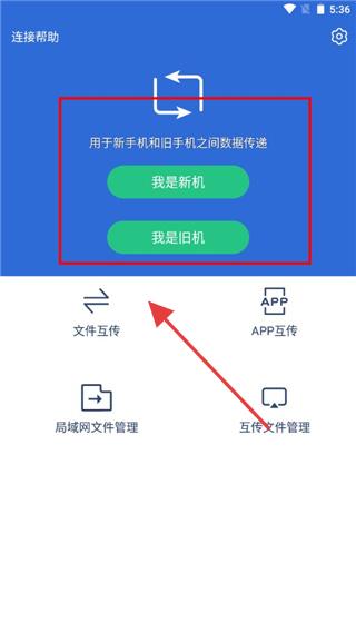 1、互传换机助手连接页,提供我是新机旧机选项,用于新旧手机数据传递,还可文件互传、APP互传等,快速建立设备连接。