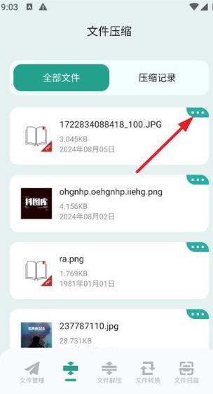 2.然后点击要压缩的文件右上角的【菜单】图标。