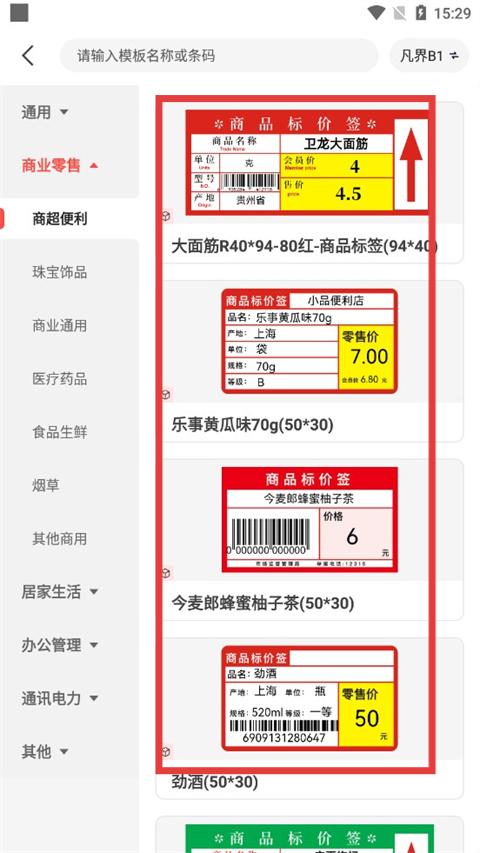 1、打开APP点击行业模板,软件会呈现海量模板库,选择一个你需要的模板,根据自身需求快速定位模板点击即可选中,开启个性化标签设计之旅。