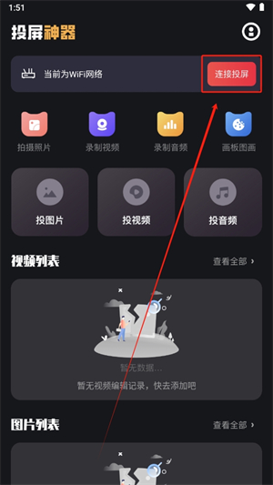 2、连接WiFi后,打开易投屏app,在最上方点击【连接投屏】;