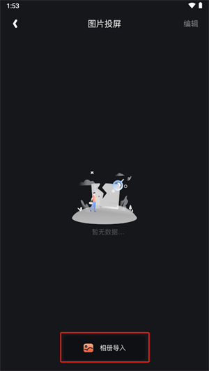 5、以投屏图片内容为例,点击【相册导入】从相册中找到照片投屏。