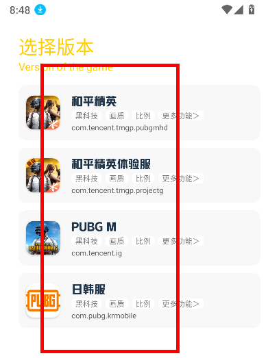 2、选定游戏版本后,系统将展示该游戏中可优化的各项功能选项。