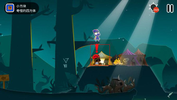 第二步:接着跳上另一边的树上,并往里走获得一个小方块!