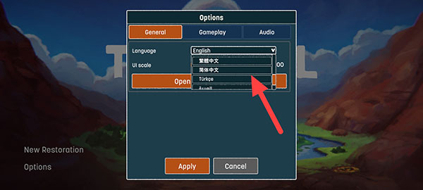 3、滑动到底部,找到“简体中文”选项,然后点击“Apply”应用。