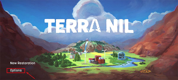 1、首先打开伊始之地游戏,进入主界面,点击左下角“Options”。