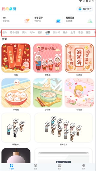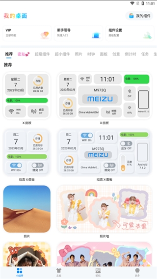 在上方我们还可以选择不同的类型的小组件,如照片、时钟、倒计时、任务、便签等等;