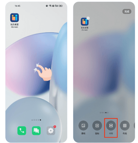 在列表中找到我的桌面iScreen,选择小组件尺寸,点击或拖动小组件到桌面。