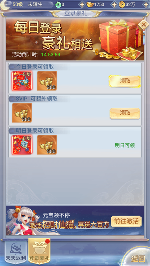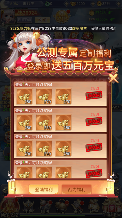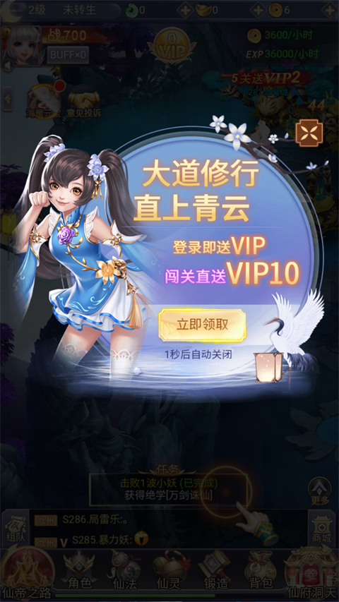 1、上线就送玩家VIP特权福利,闯关直升vip10.