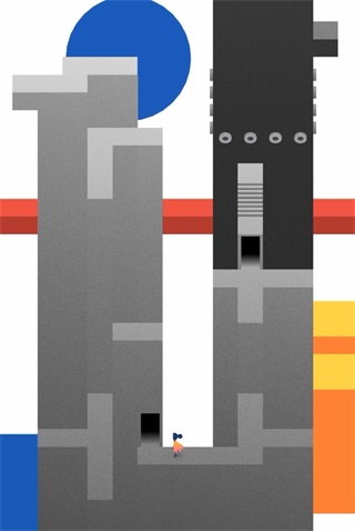 第三个场景,先将建筑搭成如上图所示,接着再移动两次这个建筑,就能到达门里了。到达新场景后,先转动轴承,让建筑变成下图所示的样子,然后向上移动建筑,小人走到移动建筑上,上升建筑,小人即可来到门处。在过渡场景中,玩家可以直接让萝尔去接触发光小人。最后一个场景中有着一排长条移动建筑,玩家要把它摆平,直接前往图腾,通过这篇章节。
