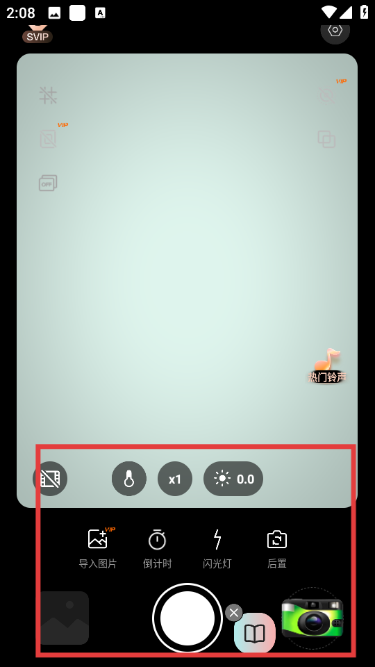 2、进入相机主界面后会看到丰富的功能按钮,比如导入图片、倒计时、闪光灯等功能,合理利用这些功能按钮,能满足不同场景下的拍摄需求,拍出理想的照片和视频。