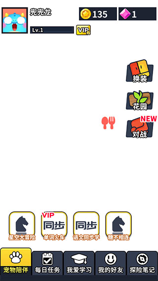 1、下载安装兜兜龙同步学app,获取兜兜龙宠物,打开软件首页