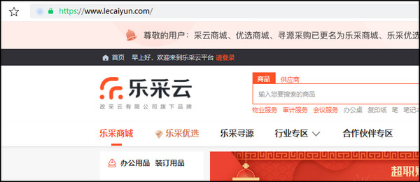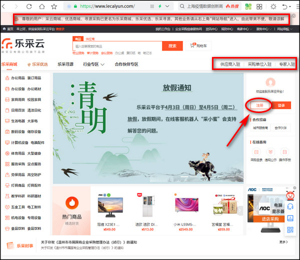 注意,这里给的地址进去也是没有注册按钮的,因为官网把商城采购服务迁移到https://www.lecaiyun.com/去了。