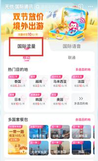 3、启动无忧行APP,在首页找到无忧行国际通讯板块,点击进入后选择国际流量选项,依据出行需求,在热门目的地等分类中挑选适配流量套餐,推进办理流程。