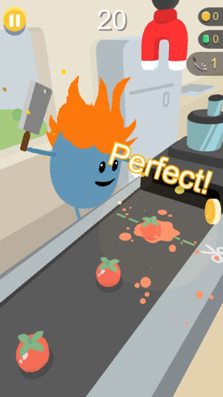 切割迎面而来的水果和蛋糕来进行榨汁,但不要切到电器哦。