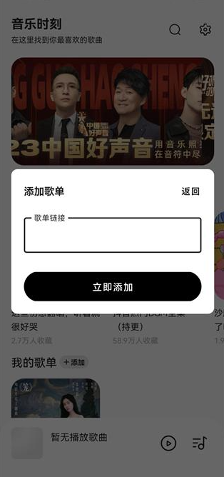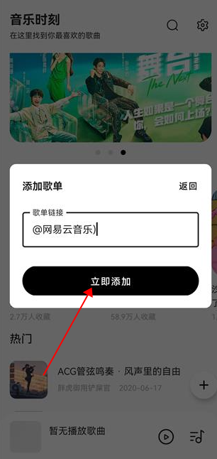 弹出一个添加歌单的弹窗,输入歌单链接即可。