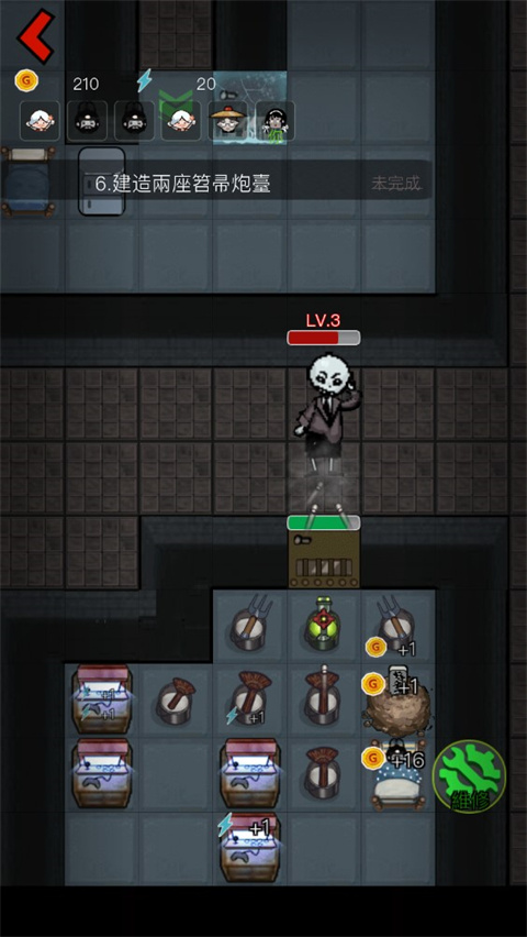 找好宿舍后优先提升床的等级和建造两个炮台,这个时候猛鬼还没有到来。