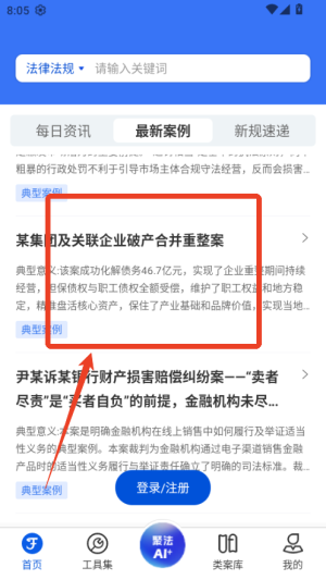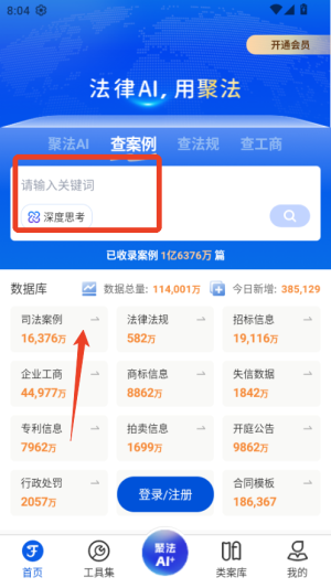 1、下载聚法案例app并打开,你可以在首页直接搜索框输入案由或关键词,快速查找相关案例。