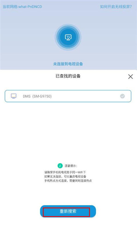 2、然后软件会自动搜索处于同一wifi下的电视