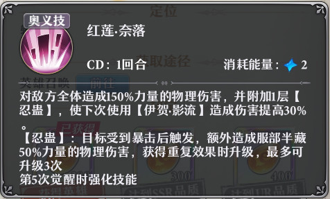 服部半藏在于她超强的暴击,超高的闪避,【忍蛊】buff在暴击后触发,可以造成大量的伤害。