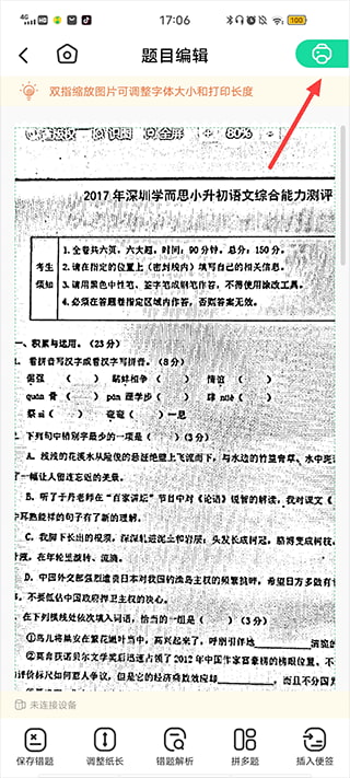 2、拍摄下错题,点击下方的“打印错题”选项。