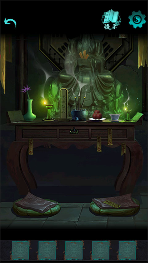 3、根据线索,将【一杯清茶】、【花】、【苹果】作为祭品放到供桌上。