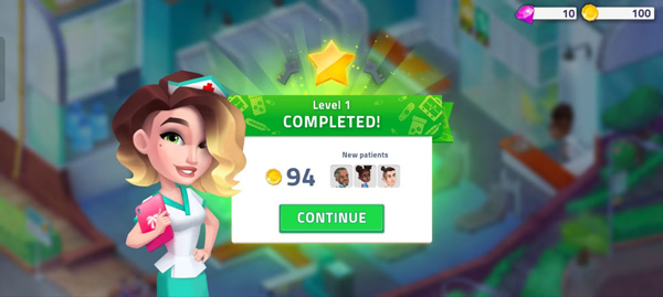 6、当治疗了许多病人,进度条满了就能够升级并获取奖励。