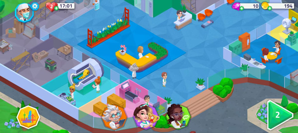 3、建立你的研究总部,帮助教授发现新的医疗设备,扩展游戏玩法,把你的医院变成一个不可阻挡的医疗保健巨头。