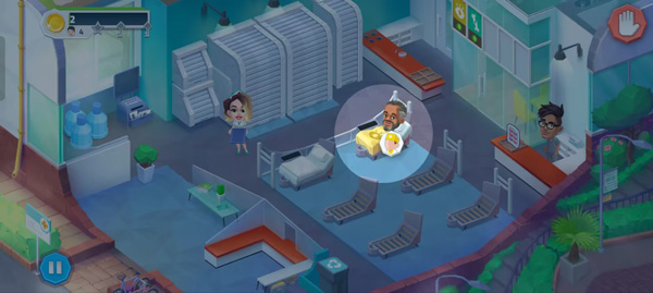 1、进入游戏,需要治疗病人和升级医院。