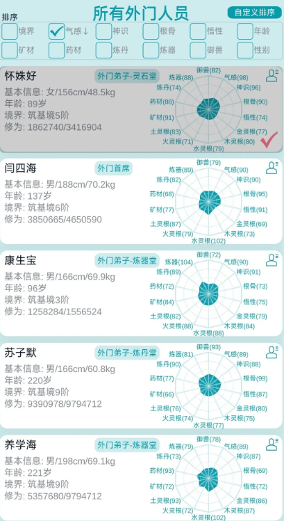 当外门弟子筑基成功后,玩家就可以将其升为内门,开启修仙之路。外门玩法倾向于经营。