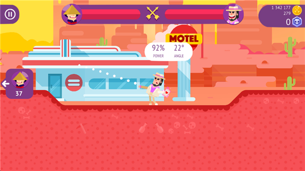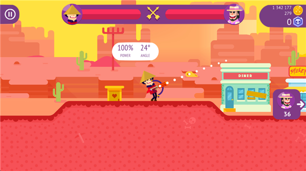 弓箭手们(Bowmasters)是一款抽象风格的横版动作射击类手游,游戏在美术上采用2D横版屏幕呈现,游戏画风非常的卡通可爱,没有一丁点冷血的感觉,在配合上扁平的画风加上鲜艳明亮配色,这些都很容易注目停留,加上游戏有点慷慨激昂的音乐,可以为玩家带来沉浸式的游戏体验感。同时弓箭手们游戏的玩法也很有趣,虽然是简单的抛物线这种很容易上手的玩法,但是却因为不同的人物角色所拥有的各种稀奇古怪的道具而变得不那么简单了。