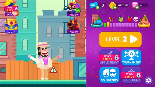 多种游戏模式。射击鸟或水果,在决斗中打败敌人,获取钱财!