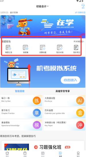 3、课后进入题库模块,选择相应章节进行练习,系统会自动批改并记录错题,方便你日后重点复习薄弱环节。