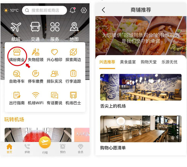 点击缤纷商业,即可查看兴选推荐、美食盛宴、购物天堂、乐游无忧,一定有你所需