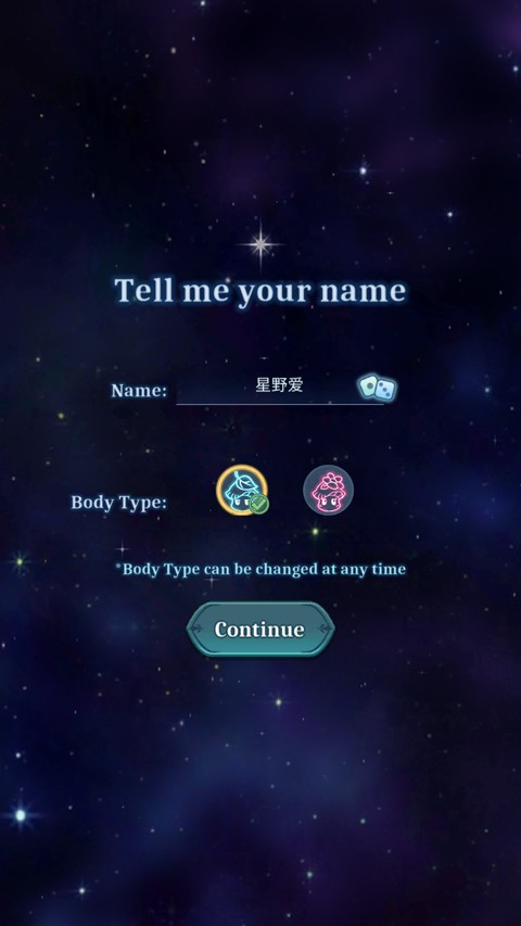 1、下载好后,选择服务器,设置角色昵称和性别,点击“continue”继续下一步;
