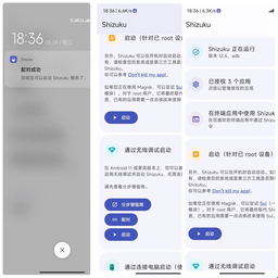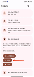 4.会显示配对成功,返回Shizuku选无线调试中的启动,成功后主页会显示Shizuku正在运行