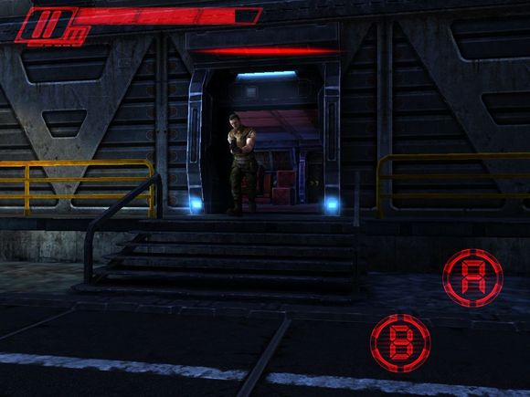 13、进入后右转看到左边的楼梯,上去后干掉人类和机器人,从散弹兵的门进去;