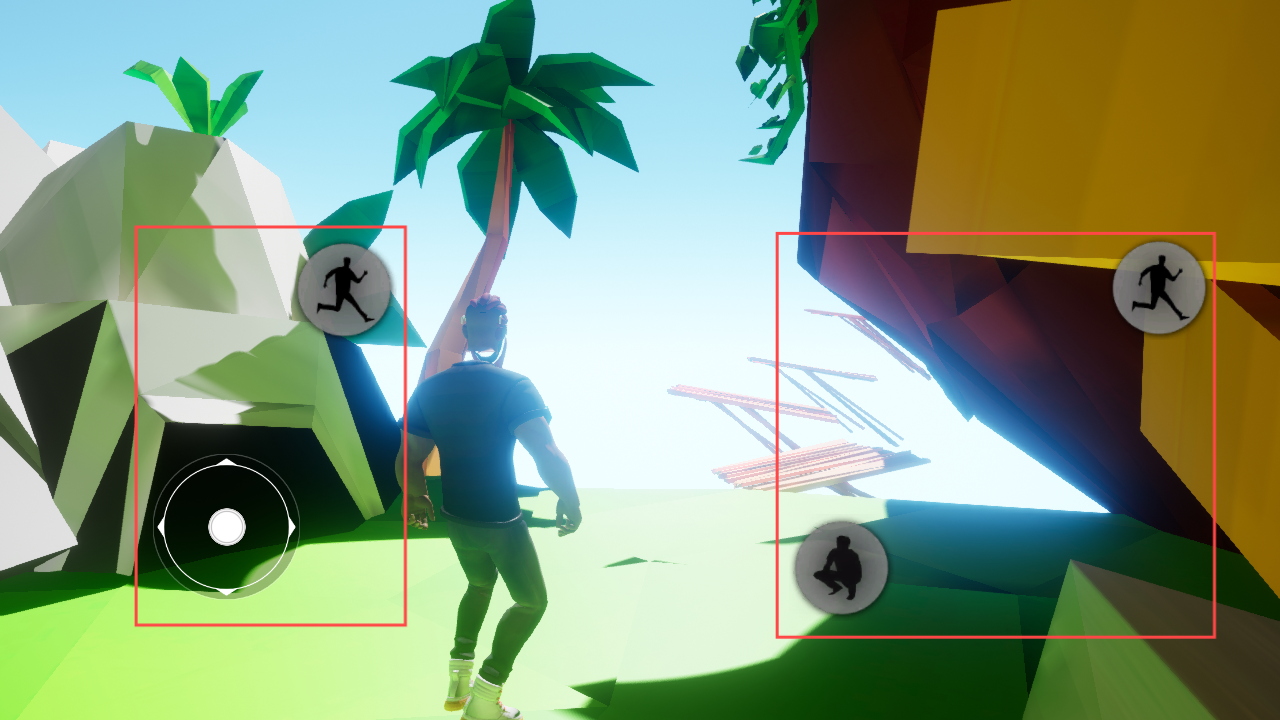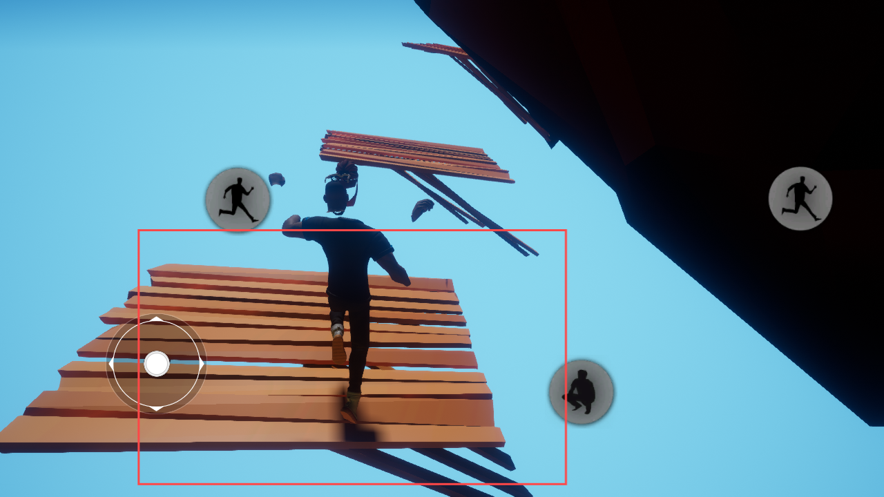 2、左手轮盘移动,右手设有下蹲键,跳跃键则是左右各一个。