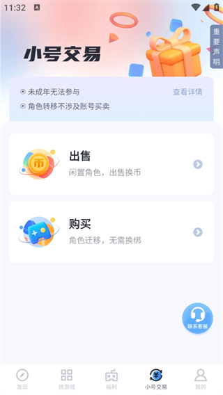 ③出售某一小号时,该小号在该游戏多个区服的角色将一并被出售。