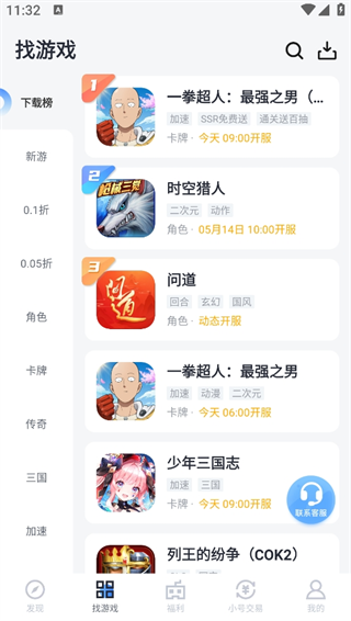 2、如果自己有想要玩的游戏,可以切换到“找游戏”,根据热门游戏榜单或者分类来查看,也可以直接在上方搜索游戏关键词。