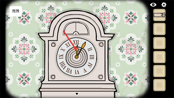 3、在时钟场景中按照拖拽提示调整时钟指针,通过指针位置的变化触发解谜机关,推进游戏进程。