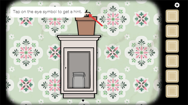 2、遇到提示Tapontheeyesymboltogetahint时,点击眼睛图标获取解谜提示,助力破解场景谜题。