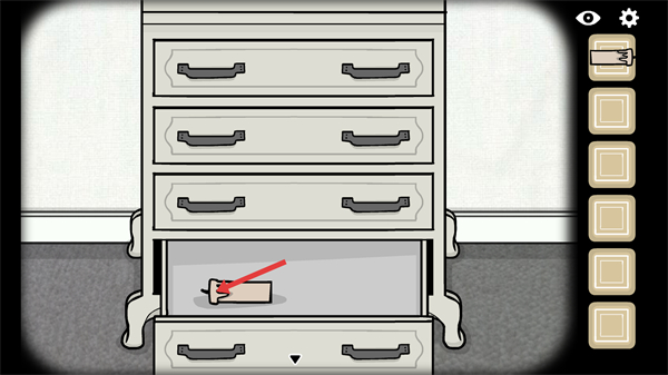 4、打开抽屉,拾取其中的物品,该物品可能是后续解谜的关键道具,收集后用于解锁新的场景或机关。