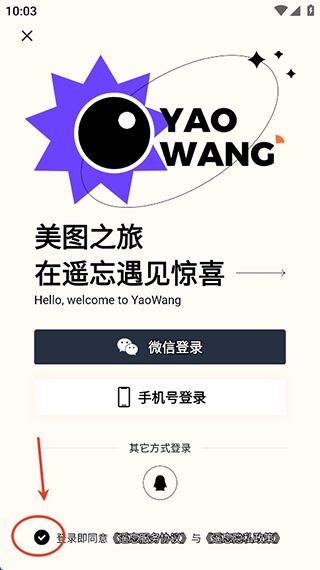 2、勾选我统一许可协议,选择登录手机号登录(也可以使用微信一键登录)