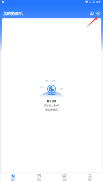 2、成功登录之后,点击右上角的+号添加摄像头;