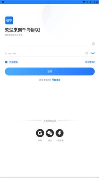 1、下载安装好千鸟物联app,通过手机号进行注册,该版本为最新版支持注册;