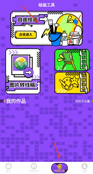 4、点击绘画工具,其中可以发挥自己的天赋,感受独特的海报制作。