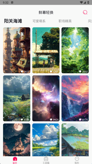 1、在首页中提供了很精美的壁纸,还有很多不同的分类;